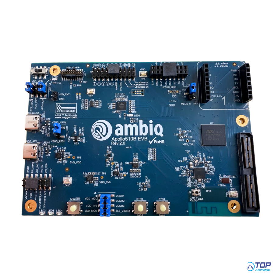 The Ambiq Micro Apollo510B evaluation board delivers excellent energy efficiency, operating at minimal power levels without compromising performance.