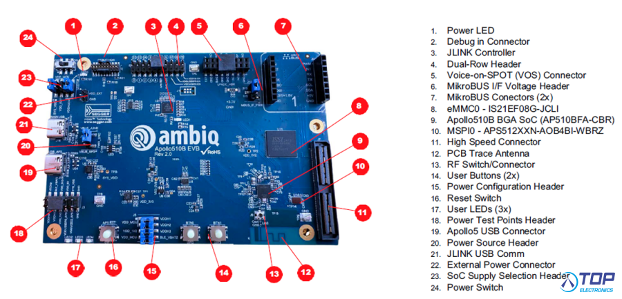 Home > Components | Semiconductors > Microcontrollers - MCU Evaluation kits > Apollo510B SoC, Eval Board