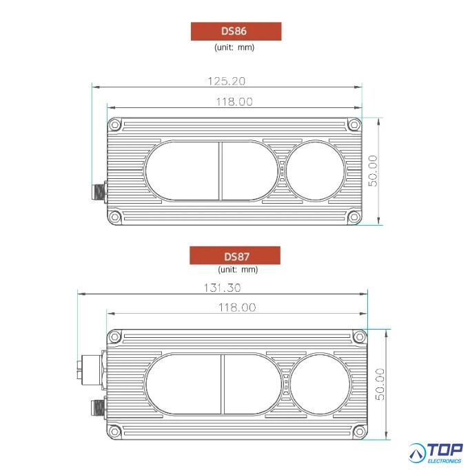 - IP Rating: DS86 has an IP42 rating, while DS87 has an IP67 rating due to its M12+M8 aviation plug connections.