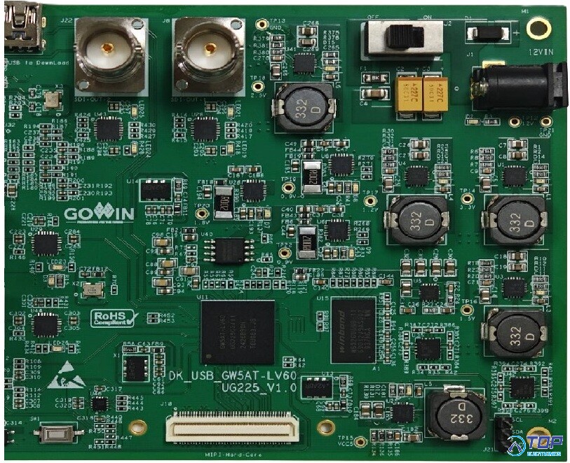 The DK_USB_GW5AT-LV60UG225_V1.0 development board targets applications with DDR3 high-speed storage, SDI and MIPI high-speed communication, and integrates SDI-IN, SDI-OUT, MIPI CPHY, MIPI DPHY, HDMI, Type-C interfaces.