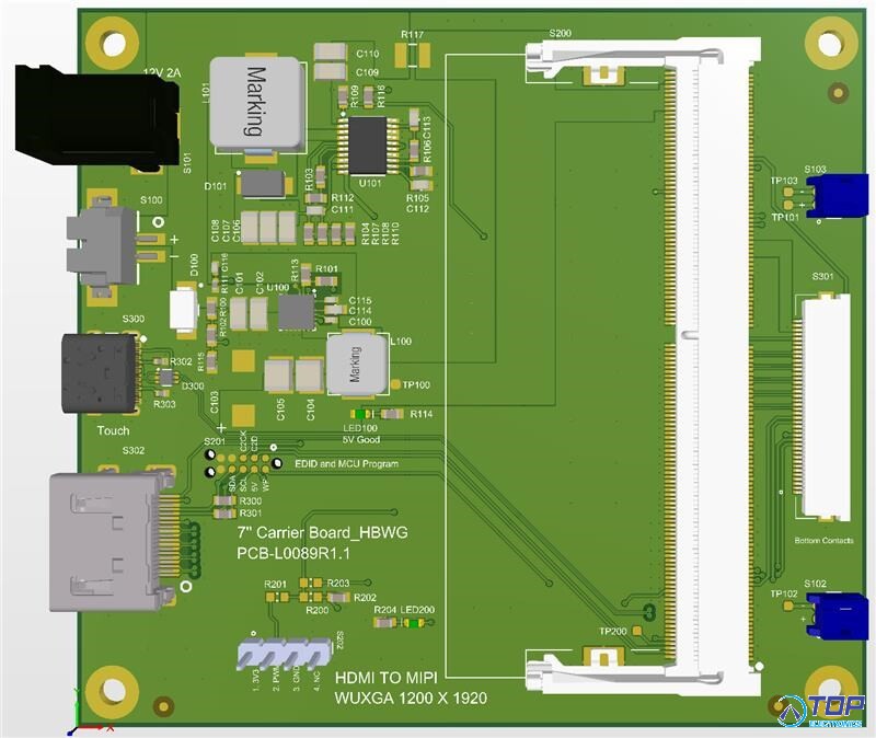 High resolution MIPI panels are most commonly native portrait orientation. The two most common resolutions supported by this module are FHD (1080x1920) and WUXGA (1200x1920). It is expected the host driving HDMI can satisfy the timing requirements as found in the EDID section below. Most Windows OS systems can output the native timing requirements and furthermore are able to rotate and flip the screen. There are dozens of Linux based platforms that are compatible as well. It must be noted that if your application is only designed for landscape mode, the GUI or capable hardware block must buffer and transpose from landscape to portrait, as there is no external buffering capability on either the SODIMM or the Carrier Board.