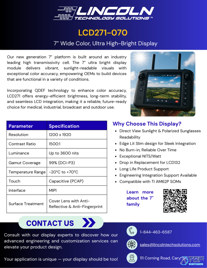7" High Bright, Wide Color Gamut, Ultra Contrast FALD with QD TFT LCD Kit