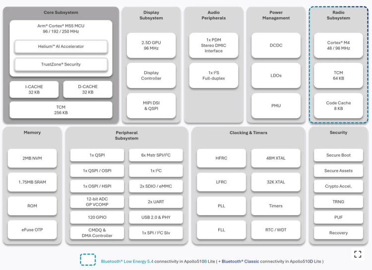 The Apollo510 Lite System-on-Chip (SoC) Series is the newest member of its Apollo5 family. Designed to meet the growing demand for always-on intelligence at the edge, the series delivers advanced AI processing, multi-protocol wireless connectivity, and industry-leading energy efficiency, empowering next-generation devices from wearables and medical devices to industrial IoT sensors and smart buildings.