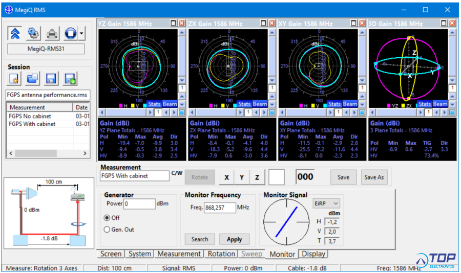 Tracking Generator output for measuring antennas in modules that do not have a transmitter.